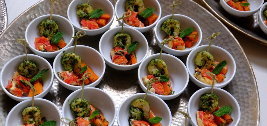 Koriandergarnelen, Möhren und Tomatenkuchen